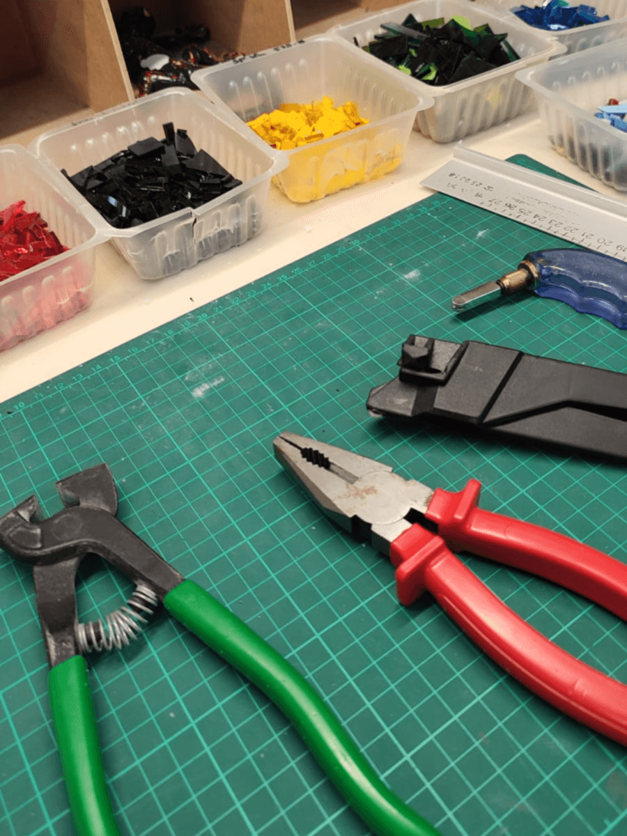Avec le fusing, rien ne se perd : les chutes de verre servent à créer de nouvelles pièces, de nouveaux motifs.